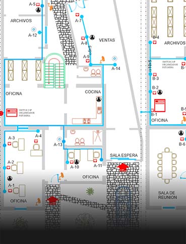 Ofrecemos diseños detallados de planos de infraestructura de corrientes débiles ya instalados o previo relevamiento, utilizando nomenclatura técnica precisa y especificaciones claras para una implementación eficiente